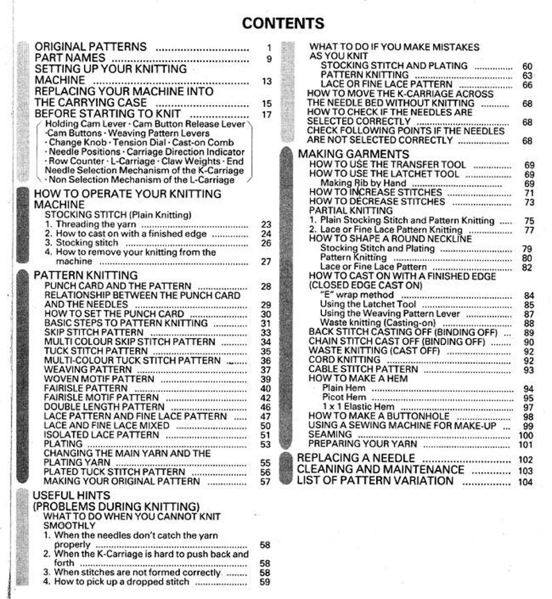 The Model KH868 Punch Card Knitter takes all the hard work out of knitting and allows you to produce knitwear that combines a professional finish with that characteristic hand-made look all knitting enthusiasts are searching for. Whats more, its so easy to use, youll really have a lot of fun operating it. Despite its attractive price, this sturdy machines comes complete with a number of sophisticated features that are guaranteed to give you hours of pleasure and improve your knitting skills. Automatic needle selection, for example, enables you to knit various fashionable pattern and a number of options are also available, including the Lace Carriage. The list of options is completed by a Single motif Cam set for producing Single Motif pattern, making the Model KH868 an ideal knitting machine for beginners and experts alike.